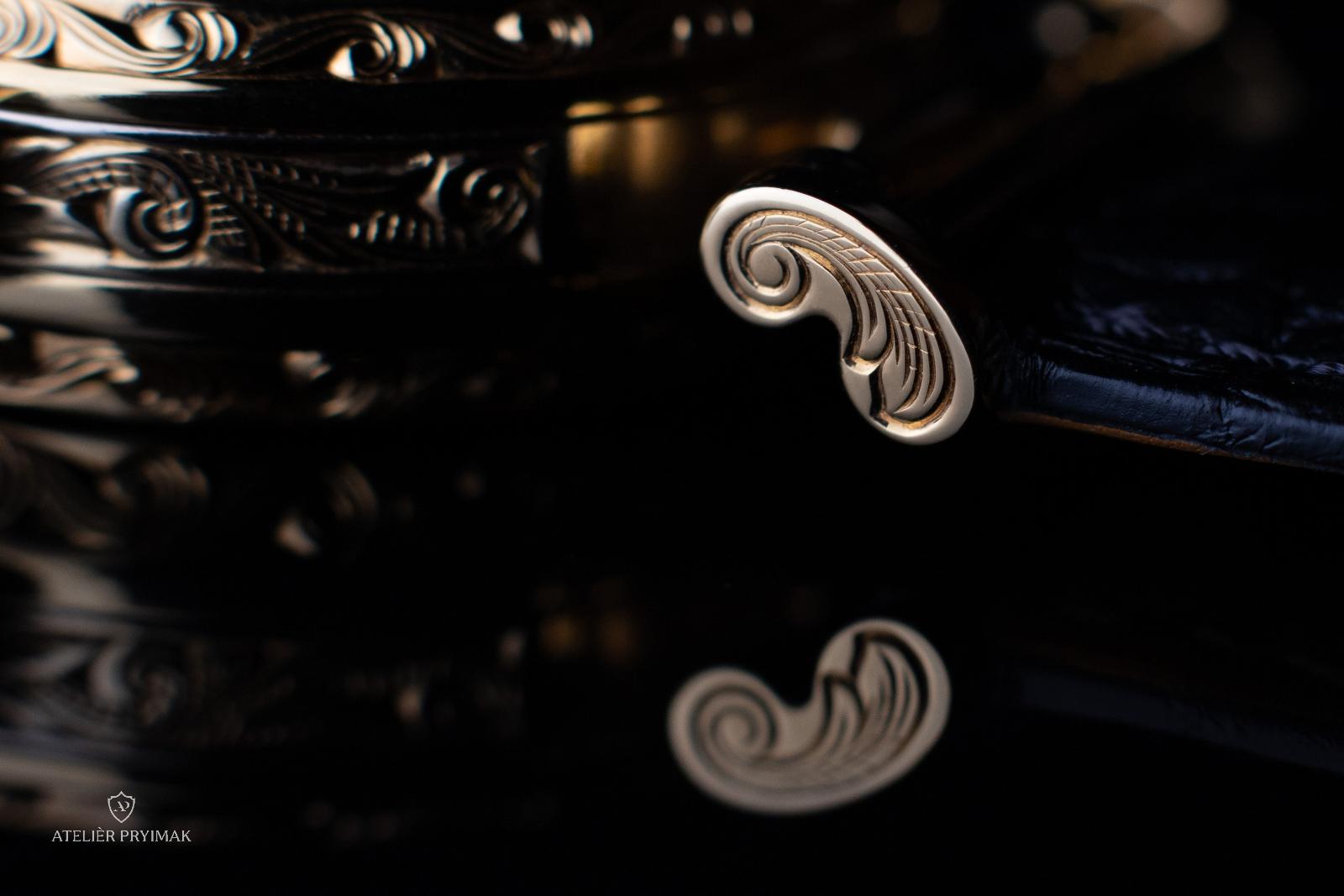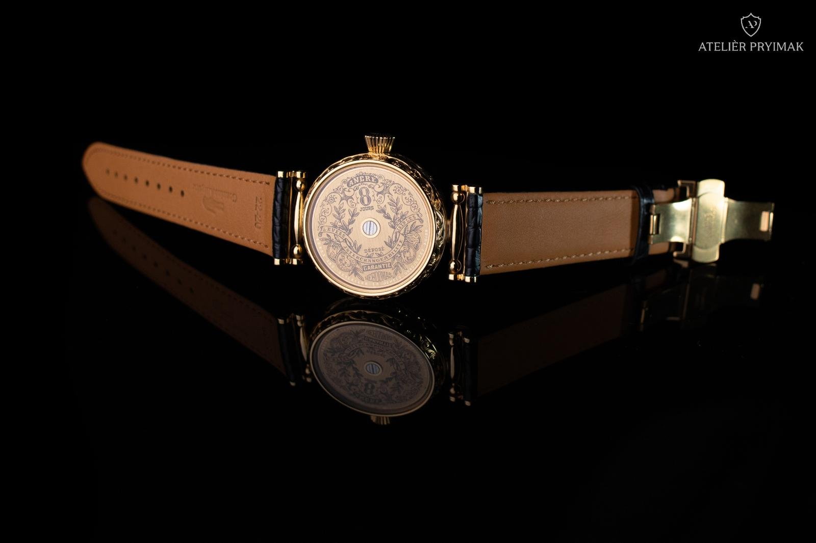 Speciálně pro tento sběratelský kousek bylo v našem ateliéru ručně odlito pouzdro z klenotnické mosazi o průměru 39 mm a zdobené precizním ručním rytím dle staročeských tradic. Povrch pouzdra byl následně upraven zlacením, což umocňuje jeho luxusní vzhled a historickou jedinečnost.