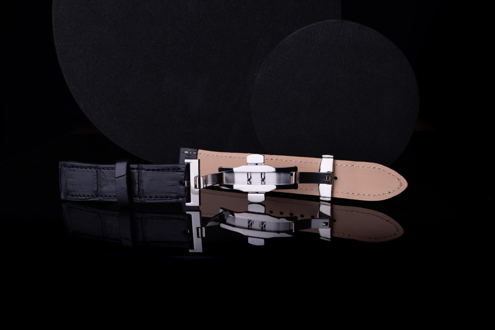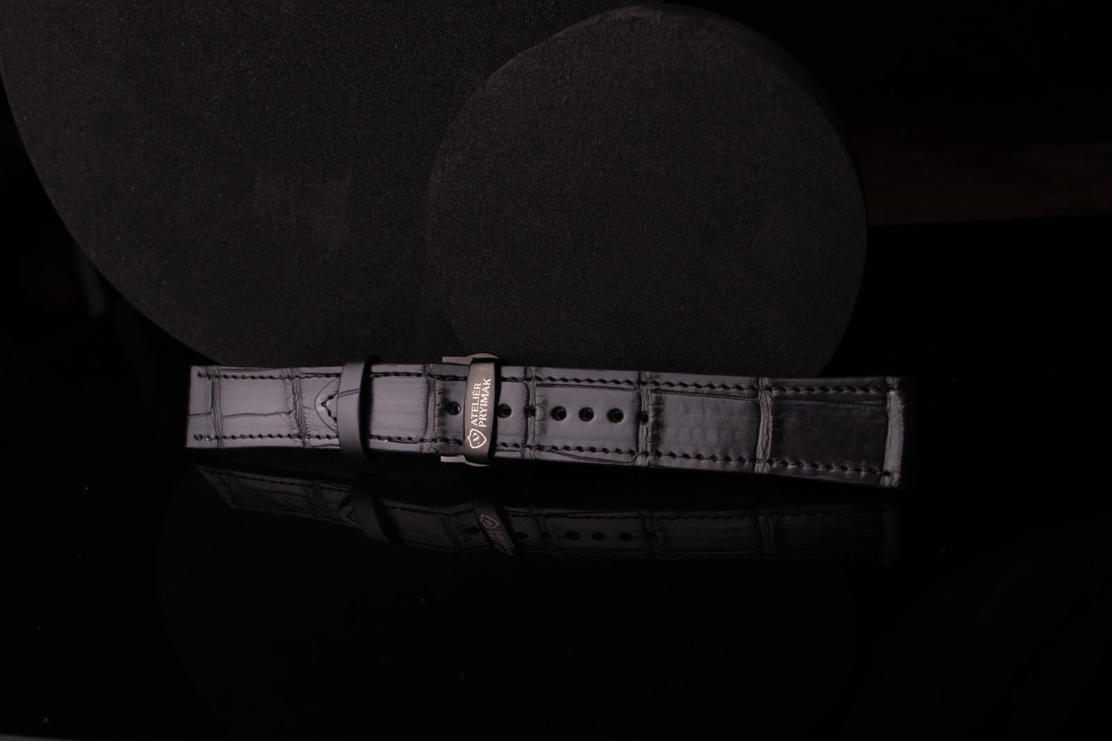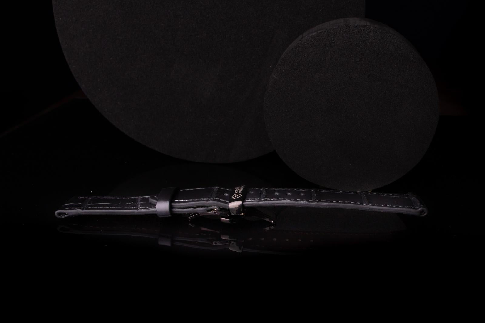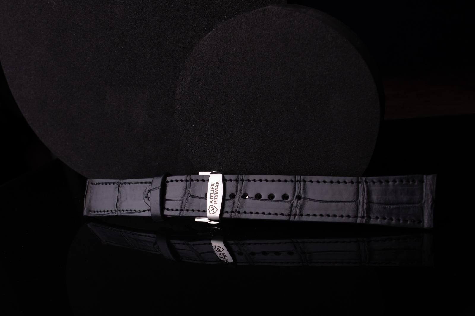Kožený řemínek AP Croco Heritage z krokodýlí kůže - černý - Ručně šitý
