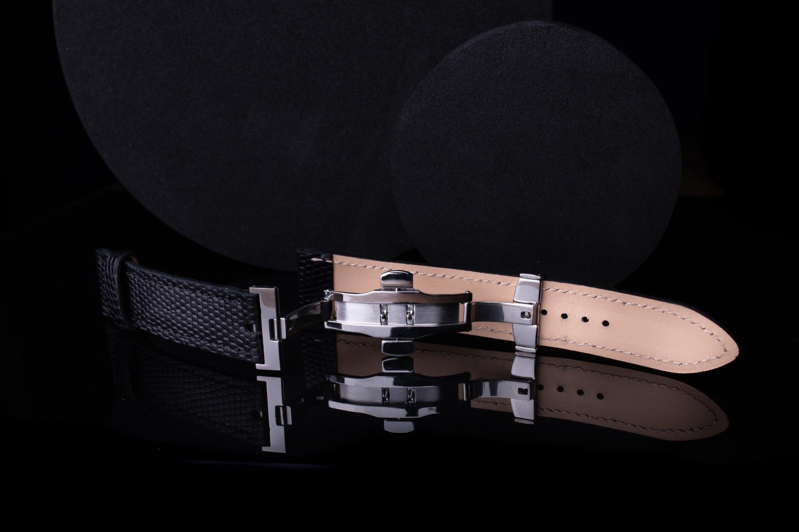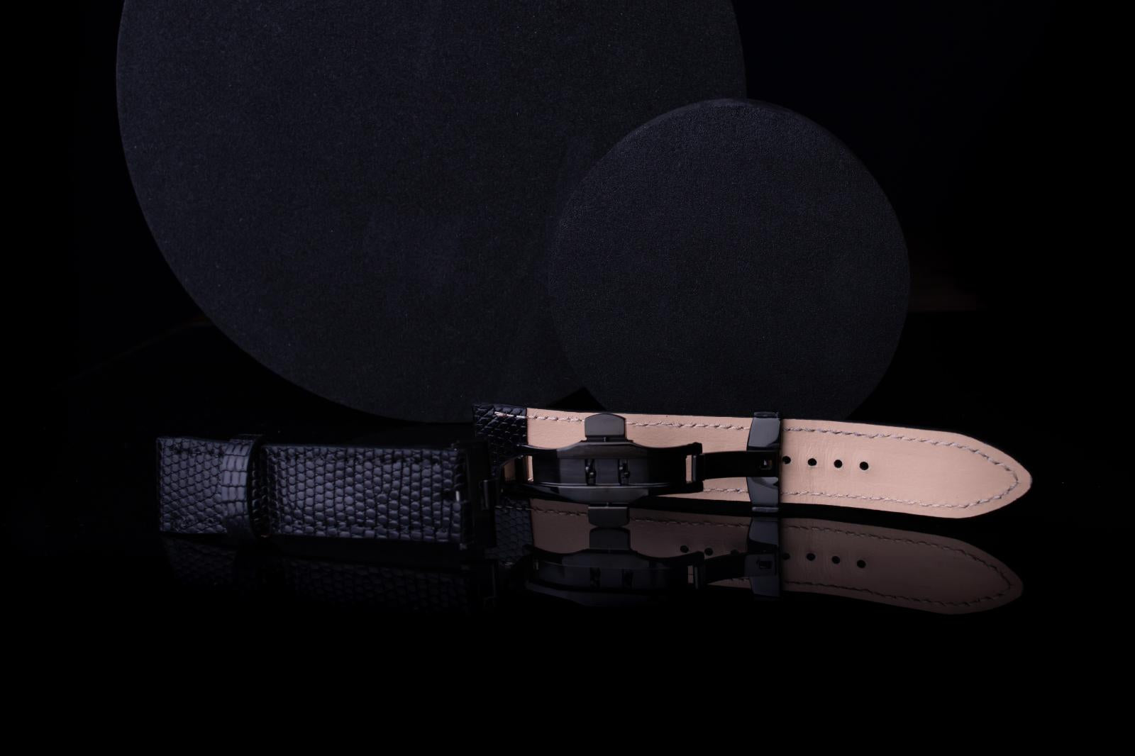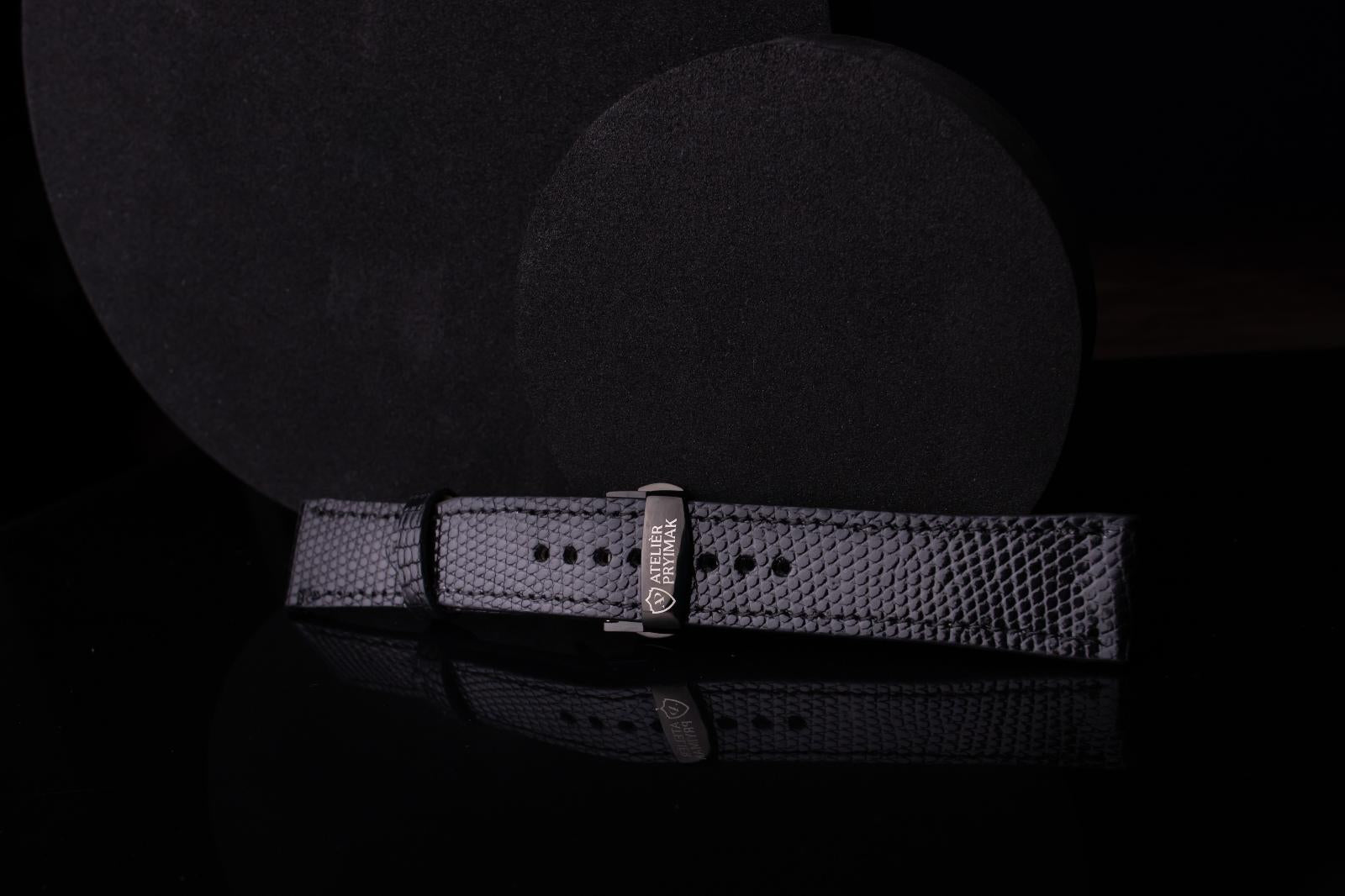 Kožený řemínek AP Iguana Prestigio z leguáni kůže - černý - Ručně šitý