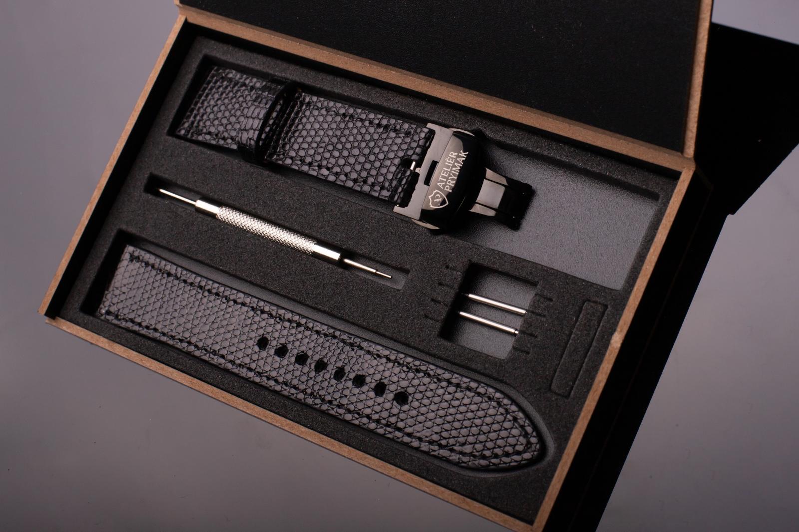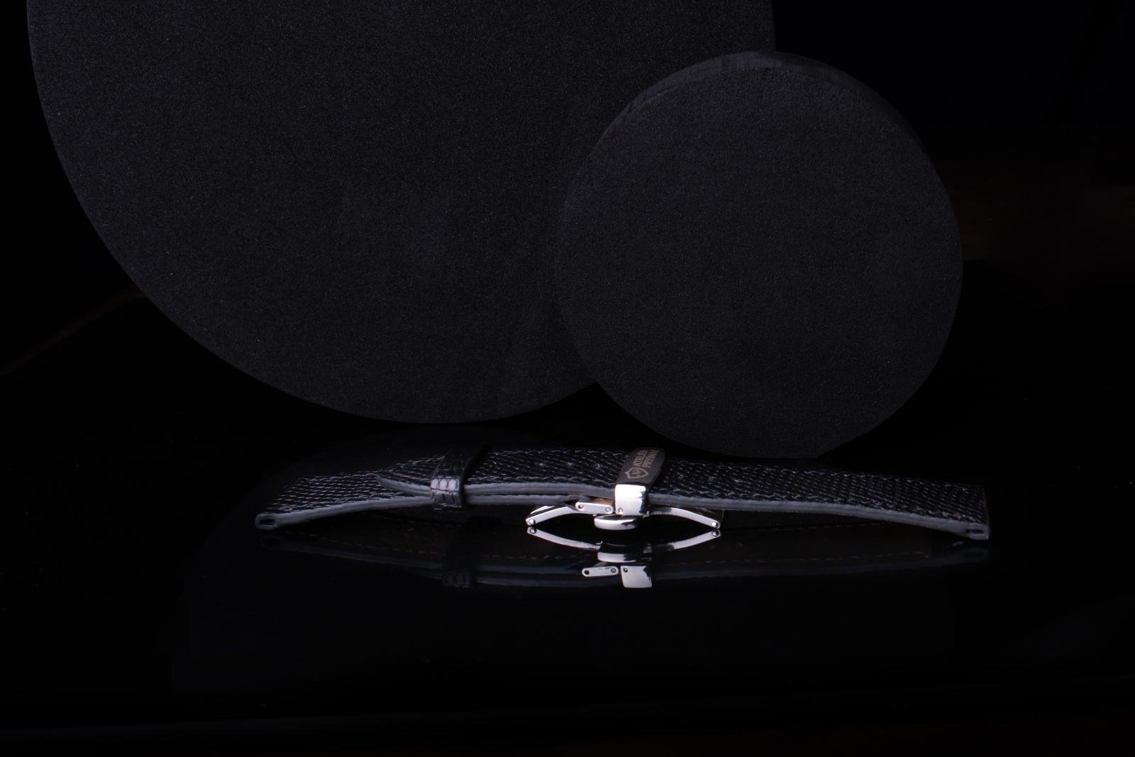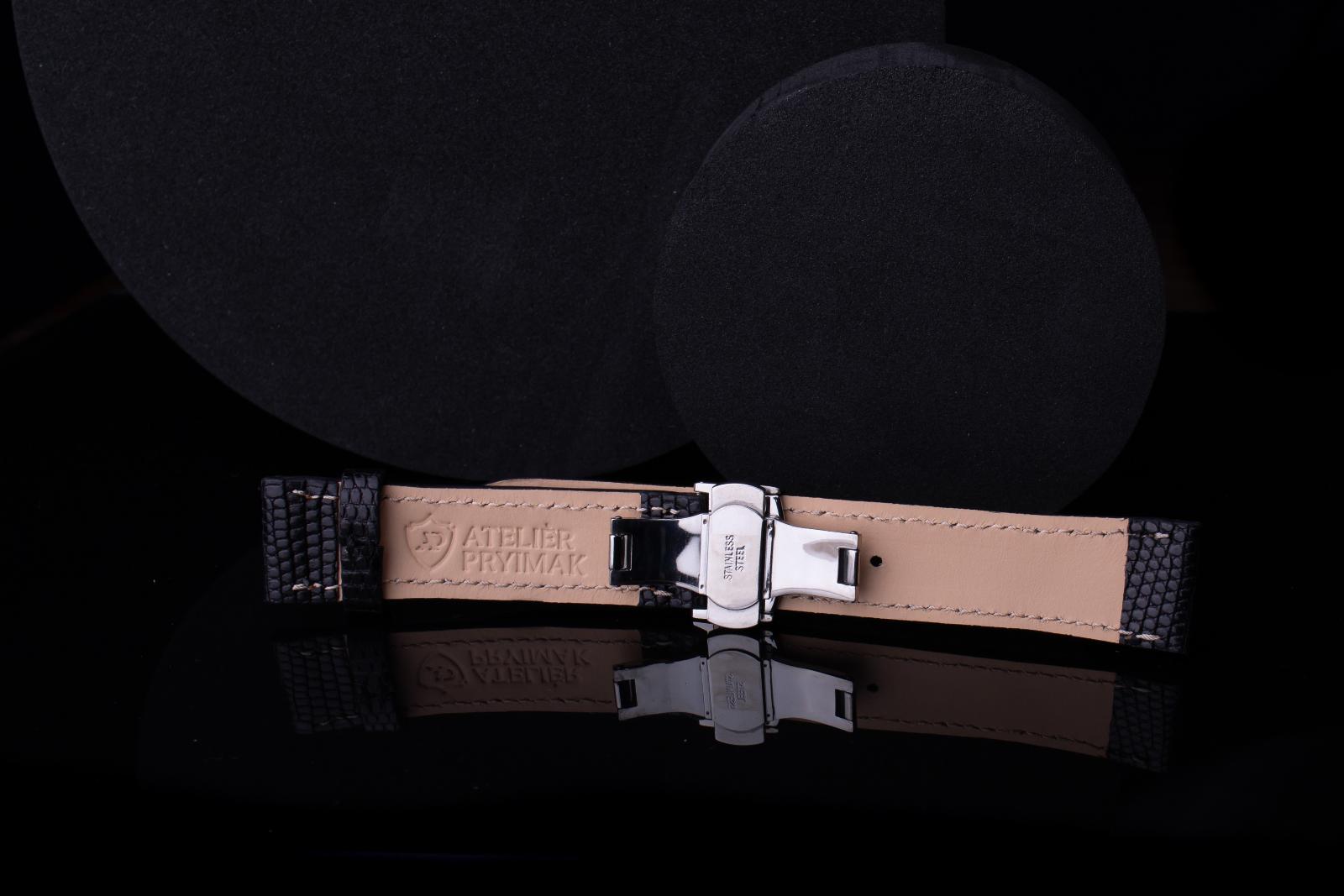 Kožený řemínek AP Iguana Prestigio z leguáni kůže - černý - Ručně šitý
