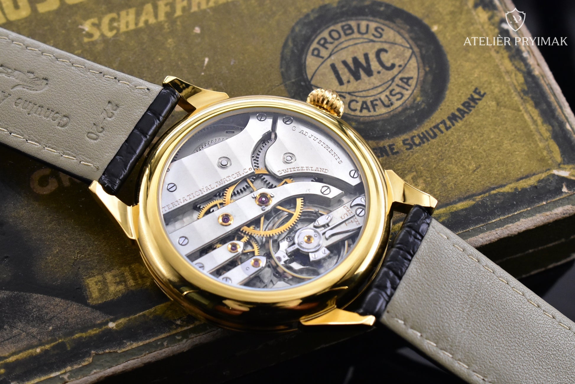 Nabízený mechanický starožitný špičkový strojek švýcarské značky IWC Schaffhausen s nádhernou ženevskou vlnou a mikroregulací, se sériovým číslem 727038, vyrobený v 1920 roce ve Švýcařsku.