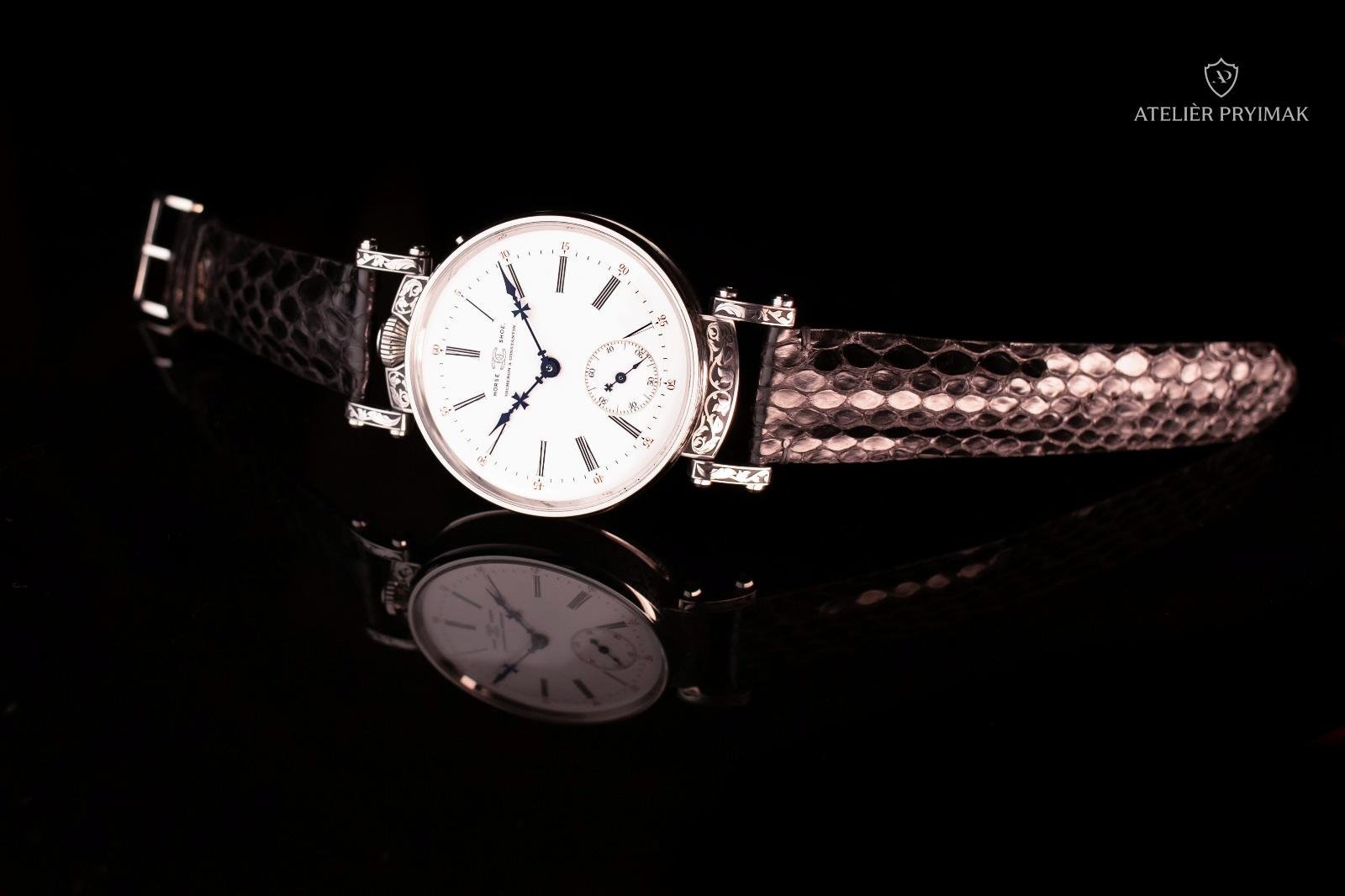Specialně pro tyto hodinky bylo v našem ateliéru vyrobené pouzdro z nerezové pouzdro což zajišťuje hodinkám luxusní vzhled a charakter jedinečný charakter. Průměr hodinek bez korunky 46mm.