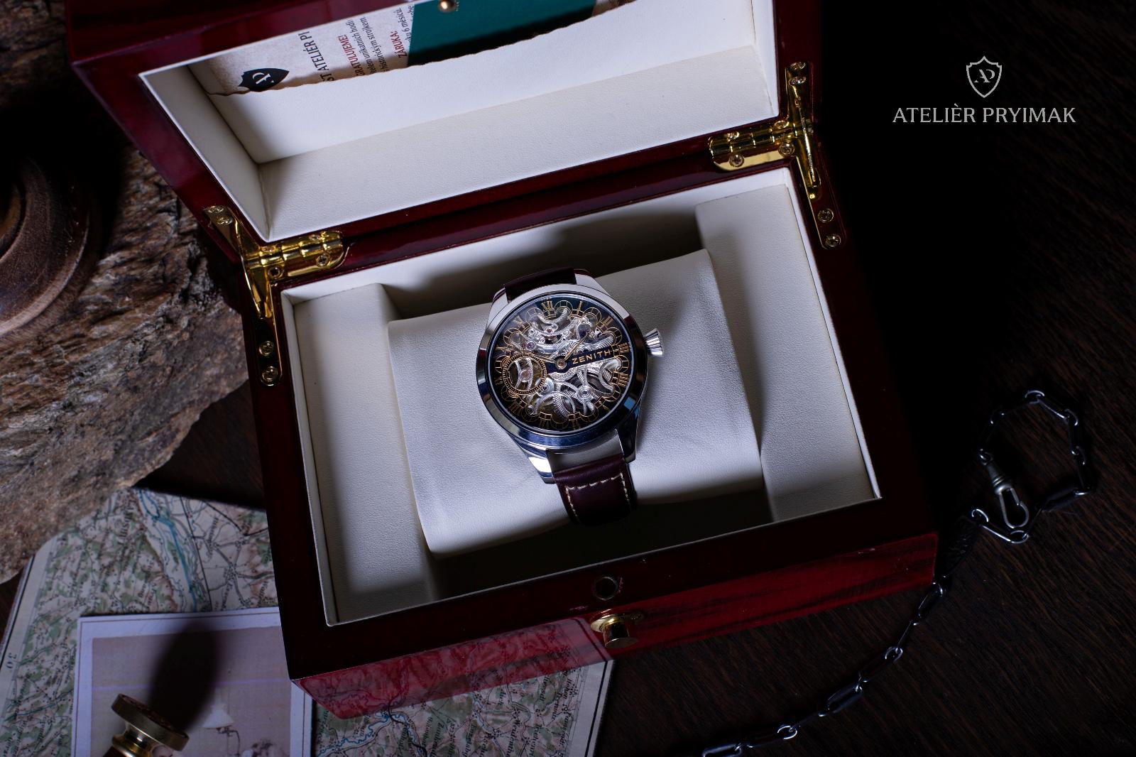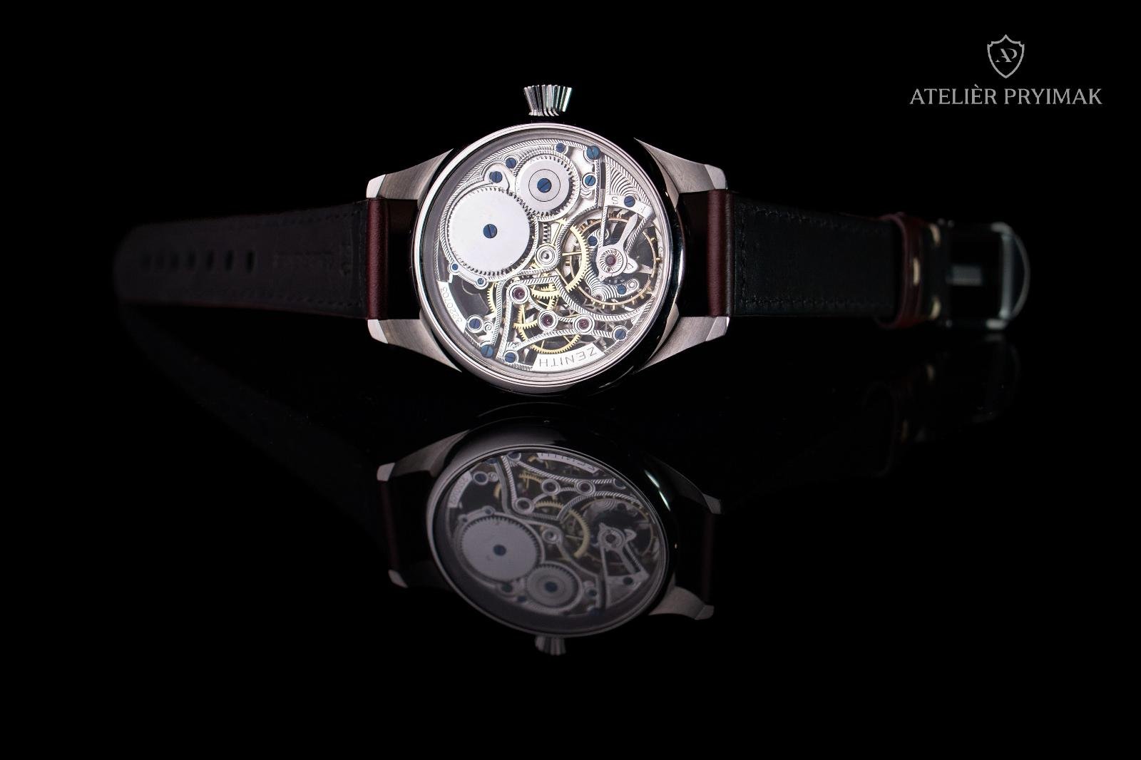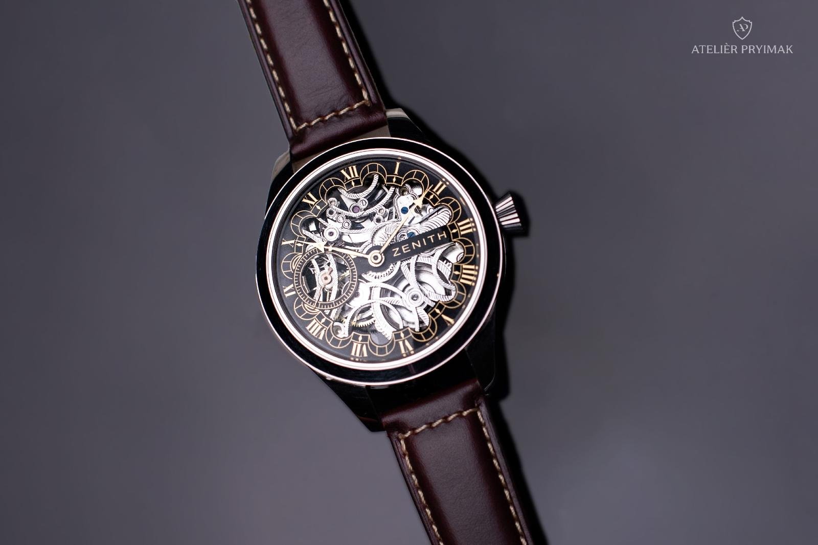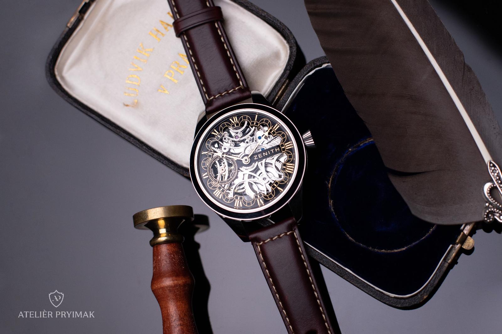 Nabízený mechanický starožitný strojek špičkové švýcarské značky ZENITH se sériovým číslem 3220703, vyrobený v 1938 roce ve Švýcarsku. Byla provedená celková umělecká ruční skeletonizace. Po skeletonizací strojku všechny díly byly upraveny, začištěny, přebroušeny a povrchově upraveny rhodováním a take šroubky byly pokoveny do modra.