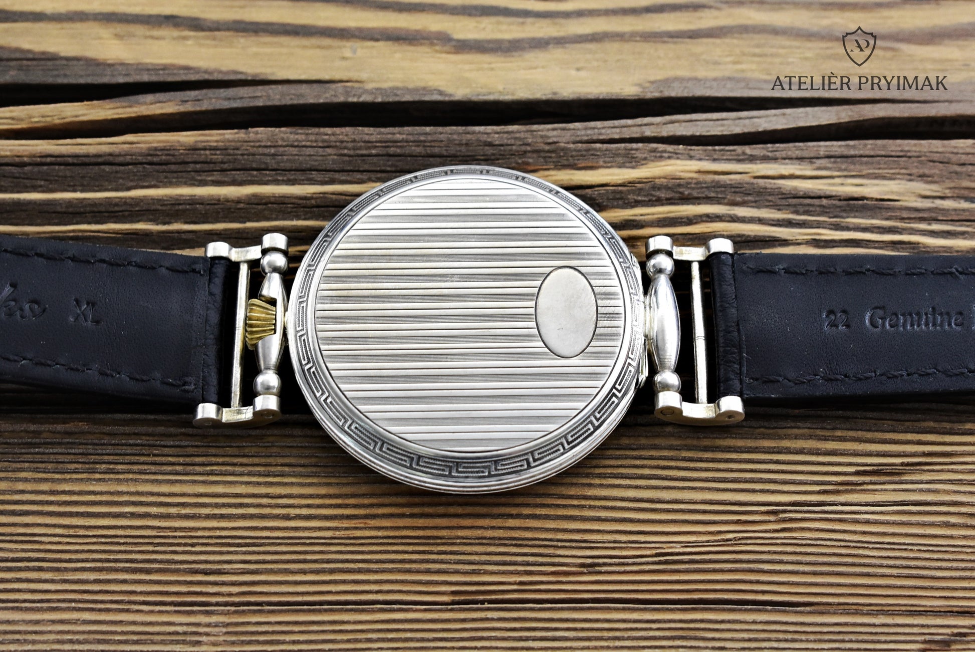 Hodinky jsou umístěny ve stříbrném pouzdře s průměrem bez korunky 47mm. Pouzdro je řádně značeno a půncovano.