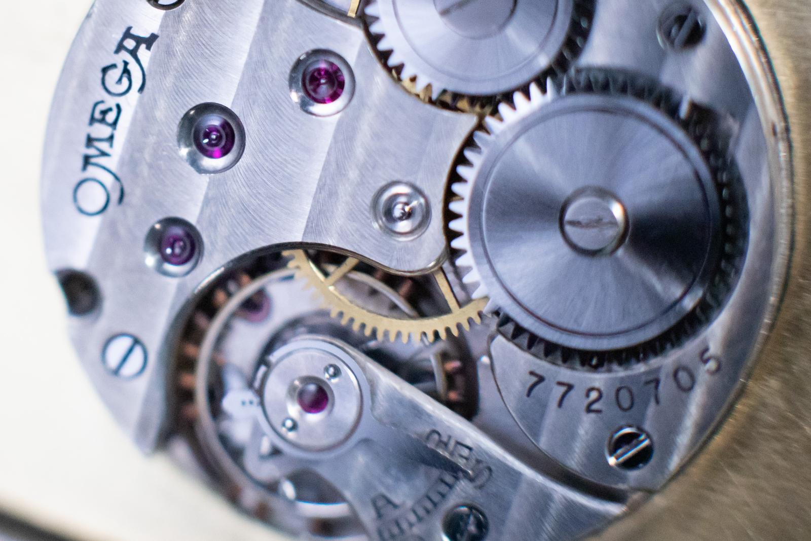 Nabízený mechanický starožitný špičkový strojek Omega, se sériovým číslem 7720705 vyrobený v 1932 roce ve Švýcarsku.